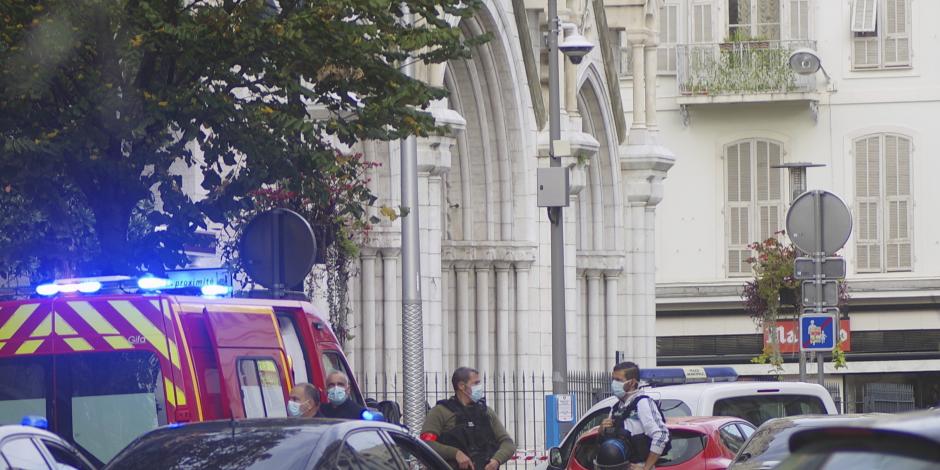 El atacante resultó herido por la policía y fue hospitalizado tras el crimen en la iglesia de Notre Dame, a menos de un kilómetro (media milla) del lugar donde otro agresor embistió con un camión en 2016 a la multitud reunida para celebrar el Día de la Bastilla, matando a decenas de personas.