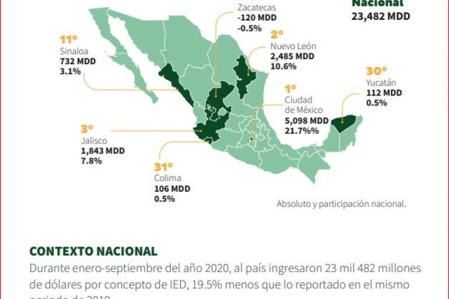 Sinaloa registra la mayor Inversión Extranjera Directa en un período enero-septiembre de los últimos 10 años Sinaloa registra la mayor Inversión Extranjera Directa en un período enero-septiembre de los últimos 10 años diciembre 16,12:54 AM By admin In Local,Sinaloa,
